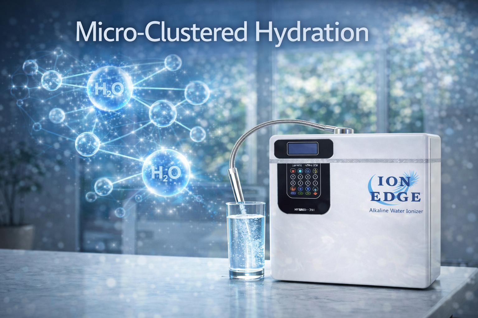 By reducing the cluster size of water molecules, Ion Edge water penetrates cell membranes more efficiently, ensuring faster and deeper hydration than conventional water.